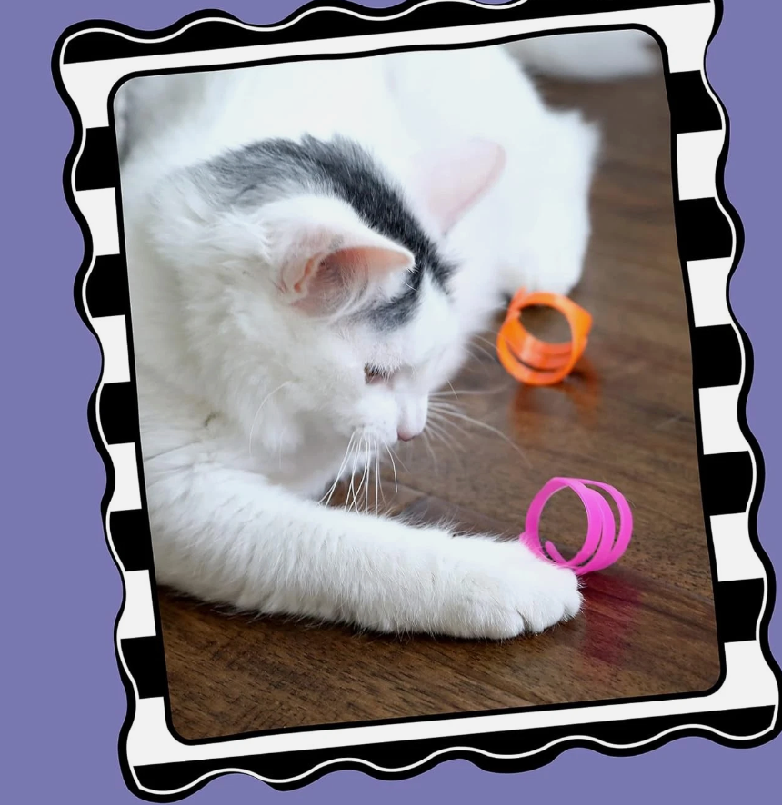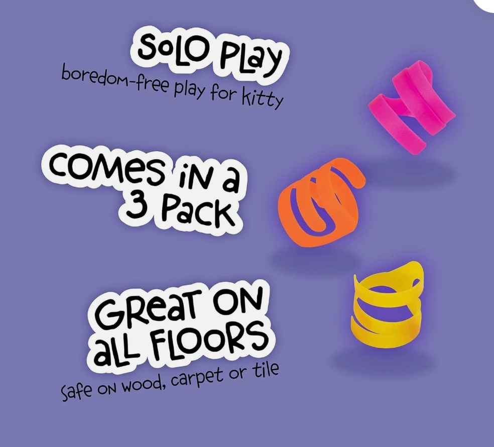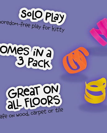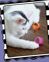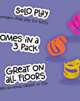 Cats go Looney for the Petmate® Looney Loops! For the most fun, try using them on a smooth floor. Your cat can slide 'em, flip 'em, roll 'em, bite 'em & carry 'em. These toys are designed to spark the imagination of your naturally curious kitty. They flip & bounce unpredictably to your cat's amusement as she bats & paws at their brightly colored plastic shapes. Available in a 3-pack variety of bright neon colors.