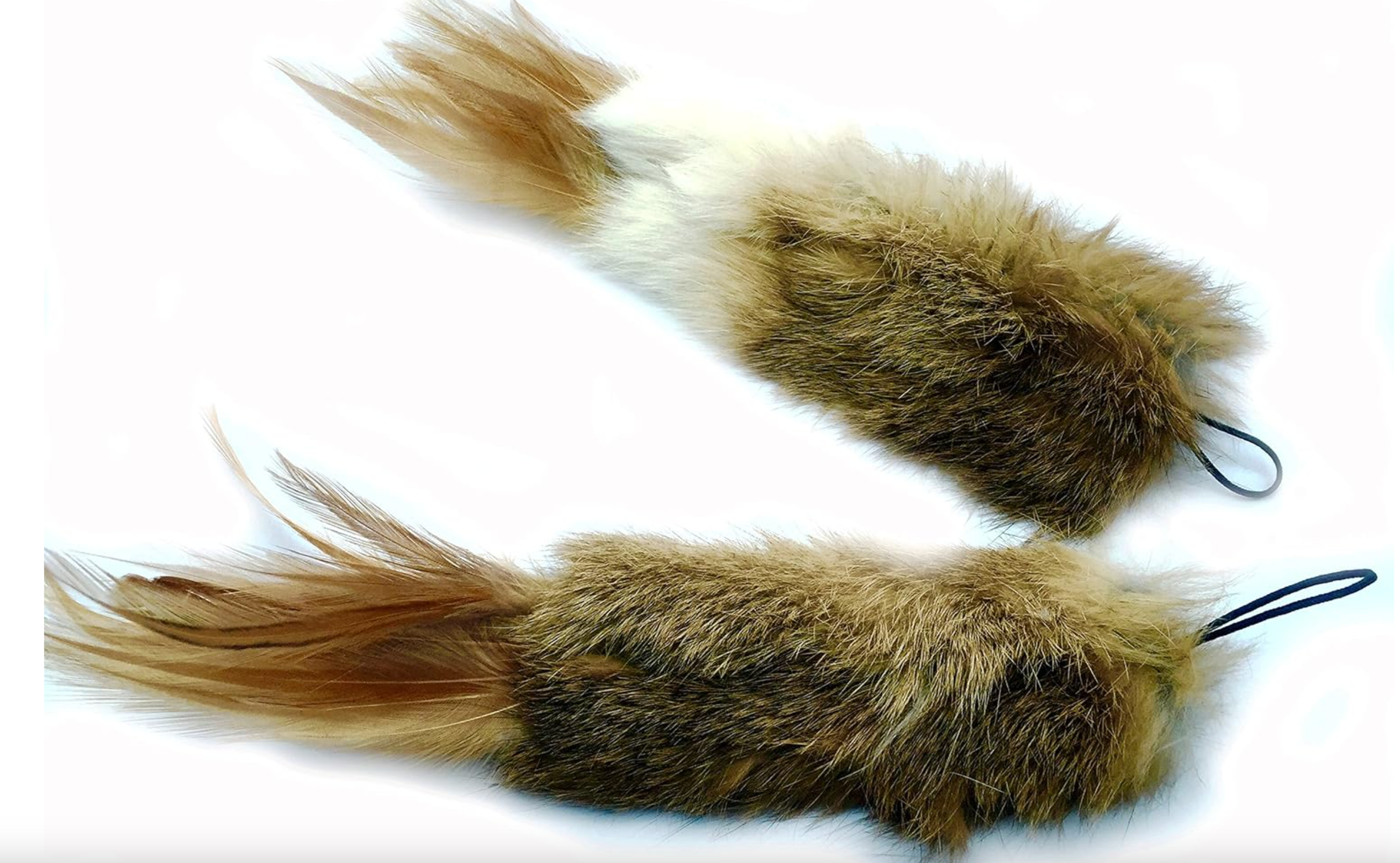 The Wild Hare Raiser Attachment is made from Wild Hare and feathers. This is a more expensive product due to only using a by-product from 100% genuine Wild Hare fur. The fur is a by-product from free roaming Wild Hares living a natural outdoor life in Germany, Netherlands & Poland and are protected under EU Animal Welfare Wildlife Laws. Wild European Hares have protected seasons so availability of the toys are dependant on the amount of welfare conservation control needed. Far better than the cheap rabbit fur toys from cruel factory intensive farms with no welfare protection and any fur from China.