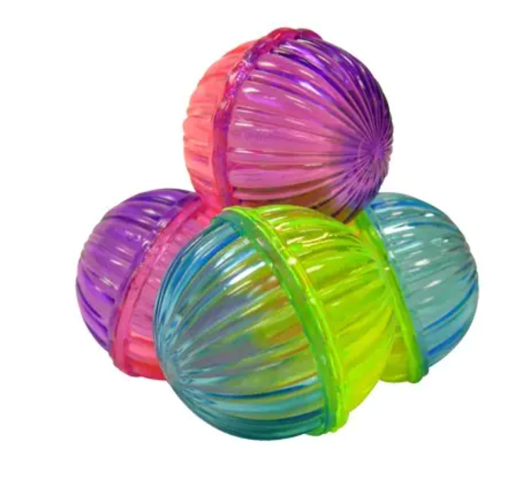 Four multi-coloured shimmer balls that make the crinkling sound.